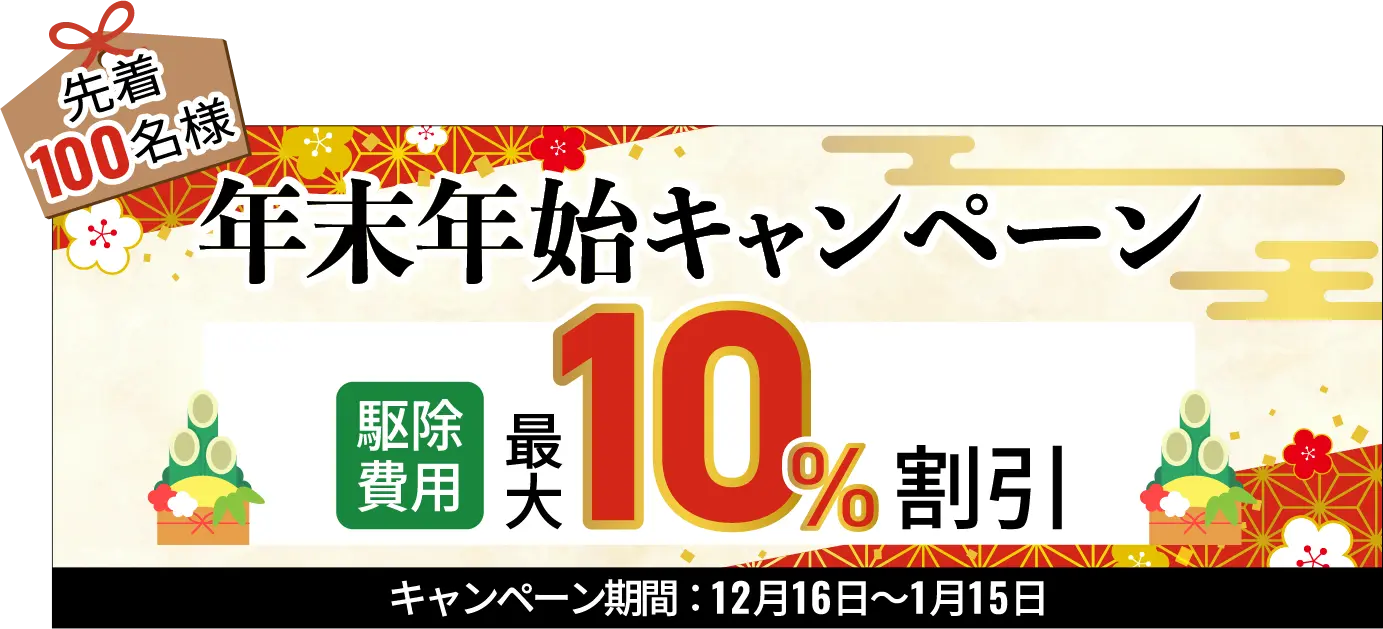 基本料金は44,000円(税込)です。その他被害状況や建物の広さ、構造、侵入口箇所によって金額が変わってきますので、詳しくは調査員にお尋ねください。