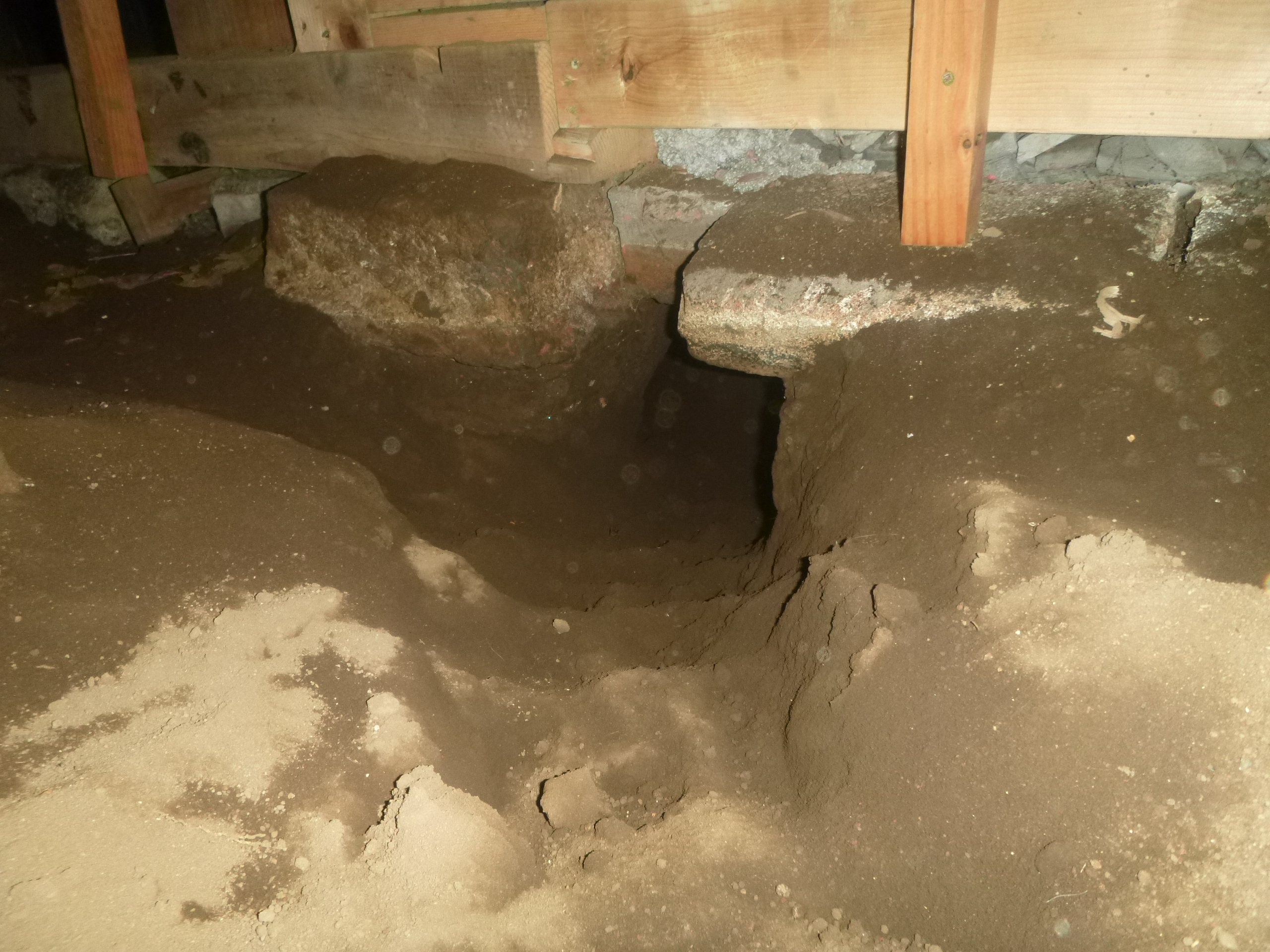 建物の下(床下)に巣穴を作られ地盤が緩くなり構造上の欠陥が発生するなどして、経済的被害が起きる可能性があります。