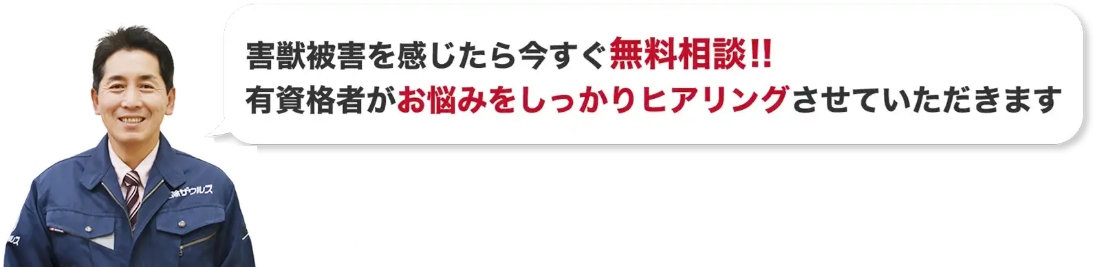 害獣被害の可能性を感じたら、まずはお気軽にお問い合わせください。ご連絡は、電話・メール・LINEでも受け付けています。年中無休24時間対応ですので、お困りのことがありましたら、いつでもご相談ください。