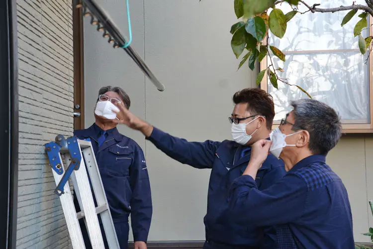 今回施工を担当したのは四柳さんと西山(駆除ザウルススタッフ)、土屋(駆除ザウルススタッフ)でした。